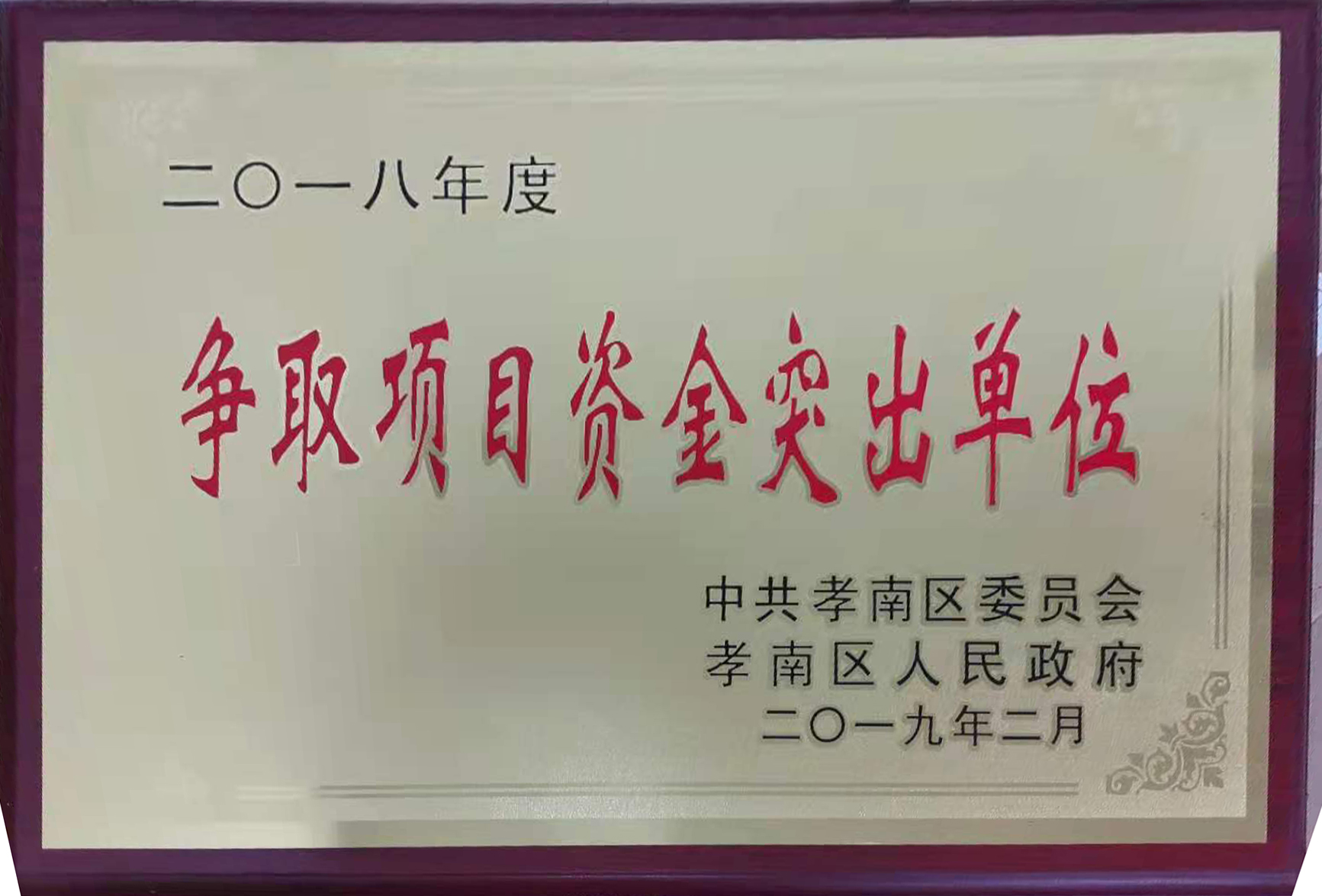 2018年度爭取項(xiàng)目資金突出單位